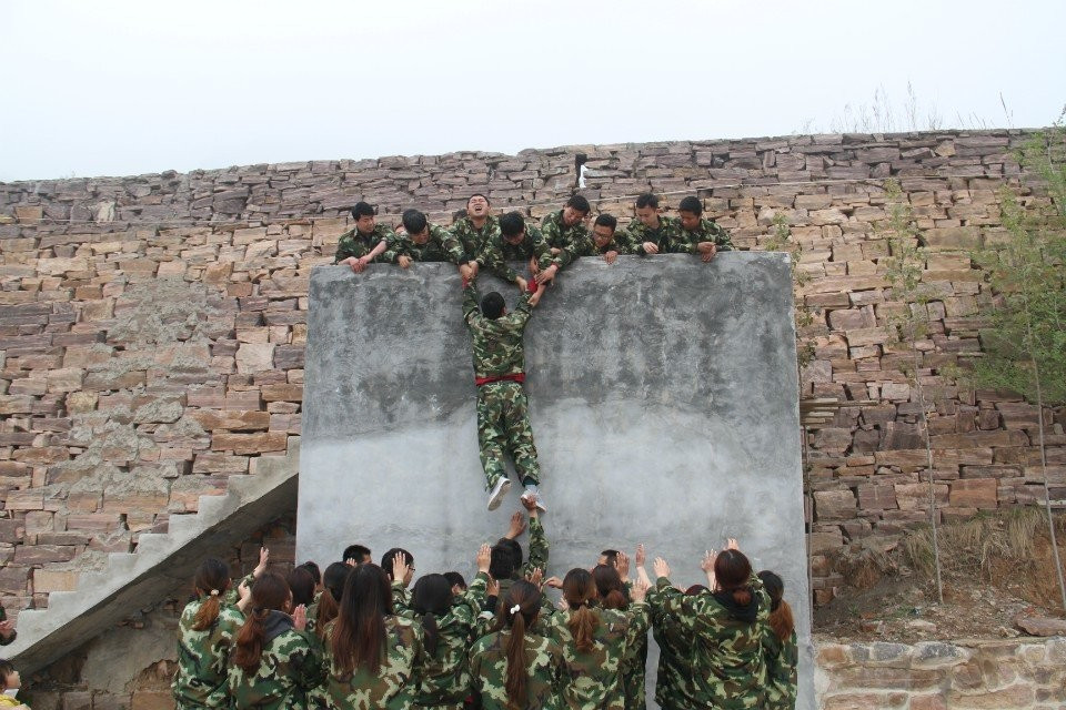 第二天早上,集體跑操,隨后是驚險刺激的“高空起跳抓杠”項目,它讓學員們學會了克服心中的恐懼,面對困難時義無反顧的去前進,在每位學員上到高空時,其他學員都高喊“加油加油,努力努力,超越超越”為期鼓勁兒。隨后在三位教練同時帶隊下進行了“激情60秒”、“動力圈”和“畢業墻”集體協作活動。“動力圈、畢業墻”則是所有人團結一心,其利斷金,簡單的動作重復性去做就是不簡單,由此也讓每位學員聯想到在工作中的自己。