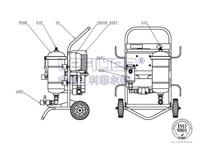 5.便移式濾油機只需更滑濾芯變可滿足不同場合的過濾需求,是預(yù)過濾并為系統(tǒng)注油及凈化系統(tǒng)油液的一種理想的工具。
