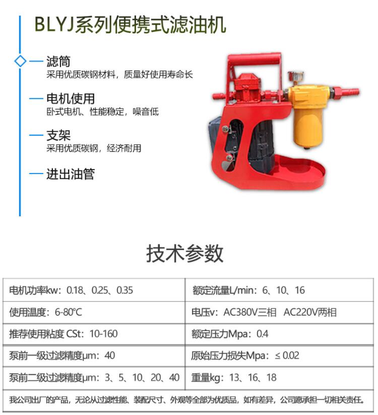便攜式濾油機特別適用于遠距離、高揚程加油、抽油使用,也可在線過濾雜質等。對機械油、液壓油、透平油、絕緣油、水、柴油機油、汽油機油等液態介質在輸送同時濾除雜質。