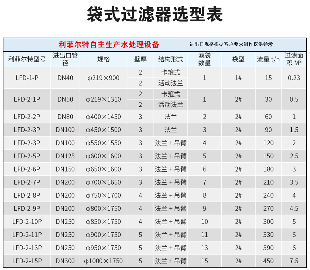 袋式過濾器LFD-1-P技術參數: