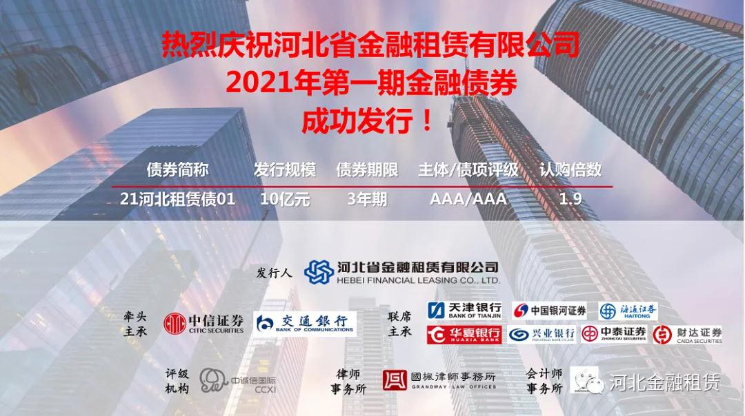 關注 | 河北金租成功發行2021年首期10億元金融債券
