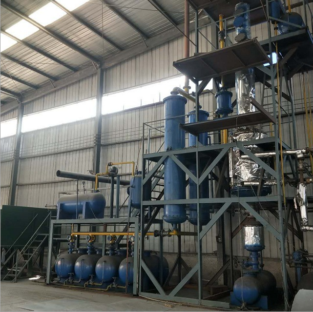 原油蒸餾設備簡介: 廢機油、潤滑油、毛油等通過催化裂解和高溫蒸餾的技術可以轉化為更高價值的柴油。它是基于沸騰液體的基礎上,根據不同混合物的揮發程度將不同的成分分離出來。經過高溫蒸餾過后產出的油品會有比較深的顏色和難聞的氣味,因此我們建議將蒸